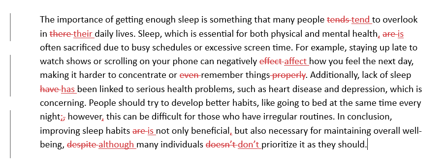 Need an example? We asked AI to generate a text on a general topic with a few errors. In the first screenshot, you can see what our copyedit of this text would look like. The second screenshot is a proofread.